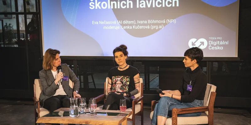 V rámci slavnostního zahájení proběhla i panelová diskuze o umělé inteligenci ve vzdělávání. Diskutovala Eva Nečasová z AI dětem, Ivana Böhmová z NPI a moderovala Lenka Kučerová z prg.ai